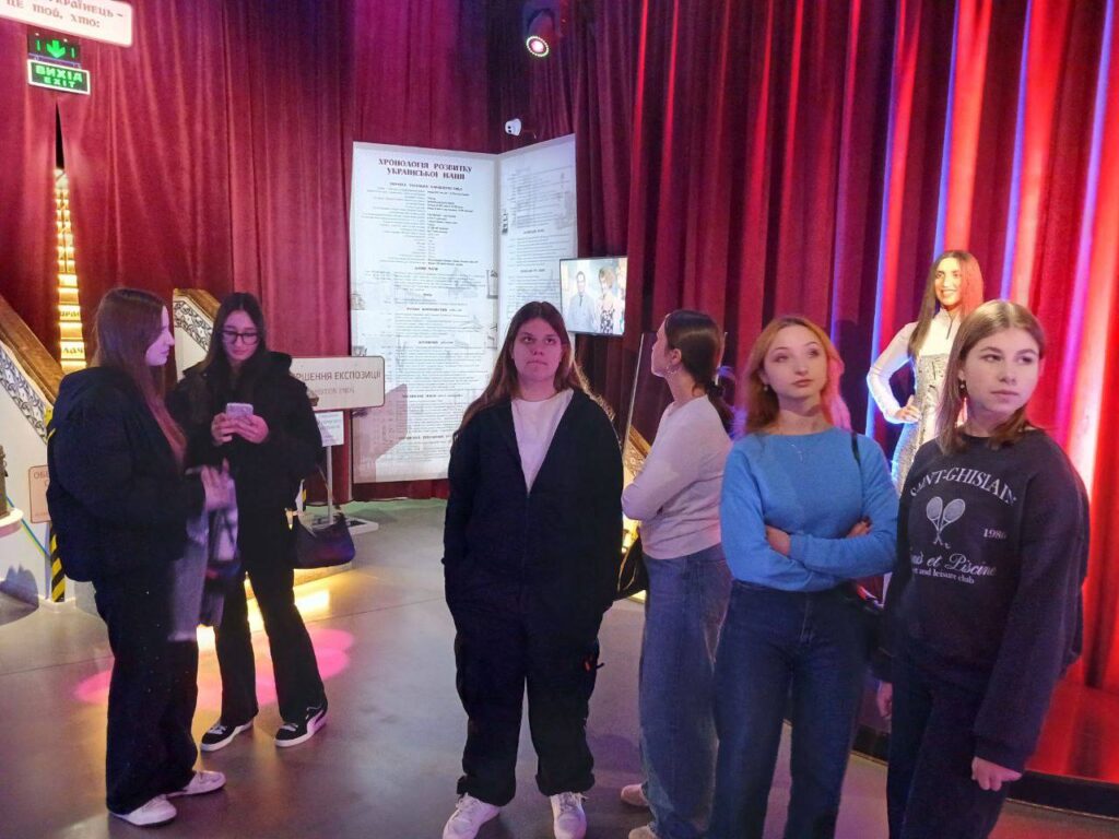 19 листопада 2025 р. у межах вивчення курсу «Туристичне краєзнавство» студенти 1 курсу спеціальності J3 Туризм та рекреація здійснили чергову подорож до Музею «Становлення української нації» сучасна експозиція якого є справжньою окрасою туристичного Києва. Під час екскурсії студентам розповідали про найяскравіші сторінки історії України, про відомих особистостей, які протягом століть прославляли українську націю. Заступниця директора Музею Мирослава Забродська ознайомила студентів з новітніми формами та методами презентації експозицій, коли всі інсталяції супроводжуються інтерактивним аудіо і відео контентом, який занурює відвідувача в атмосферу відповідної епохи.